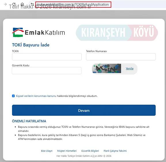 EMLAK KATILIM TOKİ BAŞVURU İADESİ İÇİN TIKLAYINIZ!